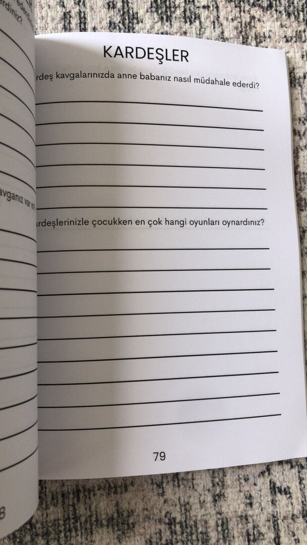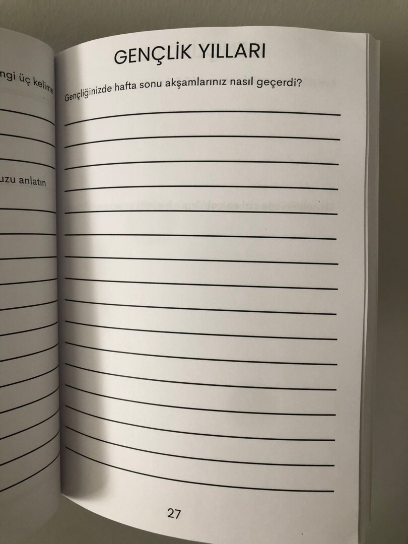 Yaşamdan kesitlerin paylaşıldığı bu defter, duygusal bir yolculuğa çıkmamızı sağladı. Babam başta çok heyecanlanmadı ama içerisindeki soruları görünce vay be der gibi düşünüp durdu. Ölene kadar o anıları sağlayacağım. Çok teşekkür ederiz.